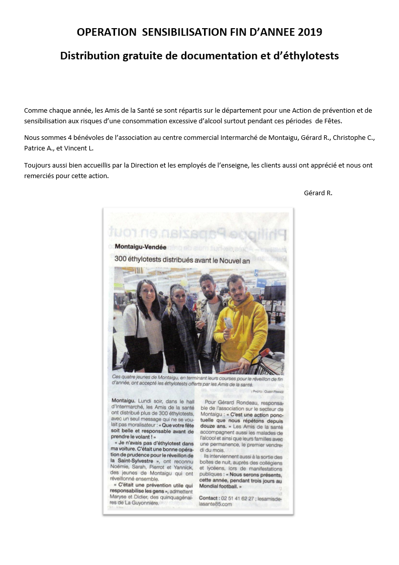 OPERATION SENSIBILISATION FIN D’ANNEE 2019